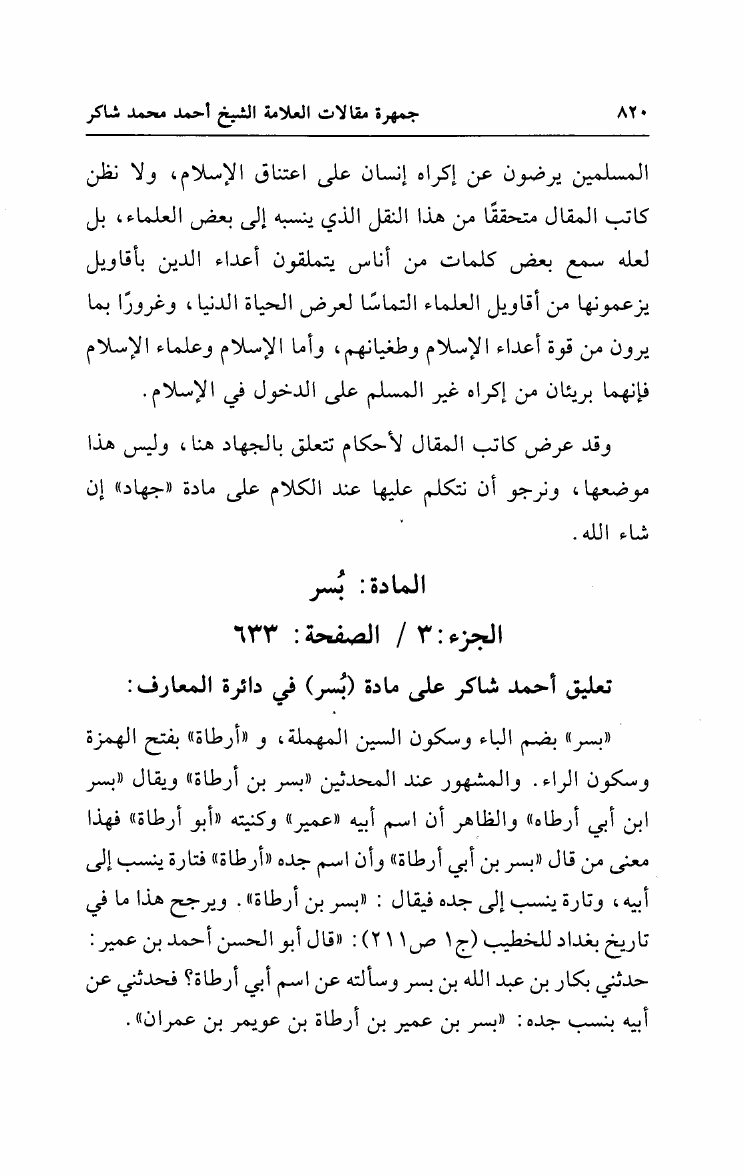 نام کتاب : جمهرة مقالات العلامة الشيخ أحمد محمد شاكر مع أهم تعقبات الشيخ على دائرة المعارف الإسلامية نویسنده : أحمد محمد شاكر أبو الأشبال جلد : 1 صفحه : 820