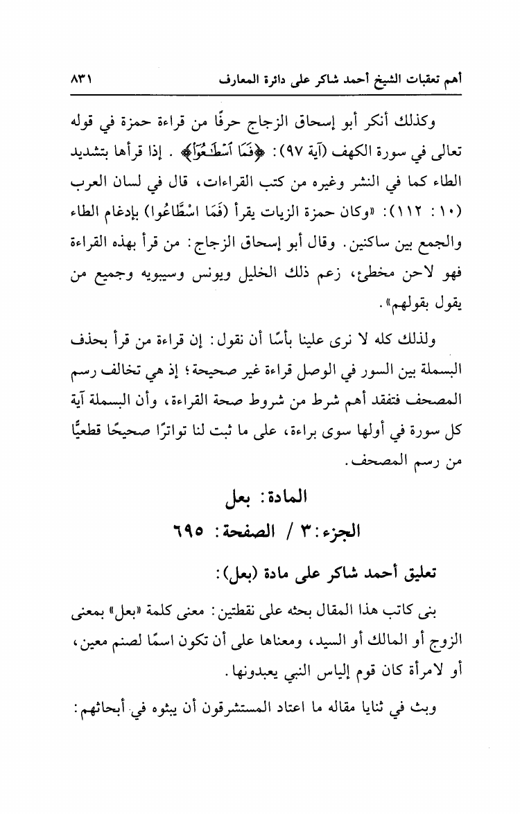نام کتاب : جمهرة مقالات العلامة الشيخ أحمد محمد شاكر مع أهم تعقبات الشيخ على دائرة المعارف الإسلامية نویسنده : أحمد محمد شاكر أبو الأشبال جلد : 1 صفحه : 831