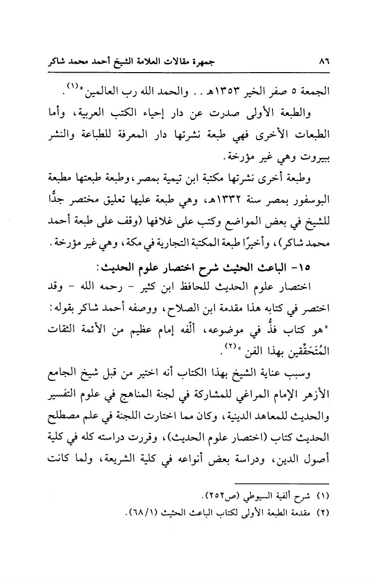 نام کتاب : جمهرة مقالات العلامة الشيخ أحمد محمد شاكر مع أهم تعقبات الشيخ على دائرة المعارف الإسلامية نویسنده : أحمد محمد شاكر أبو الأشبال جلد : 1 صفحه : 86