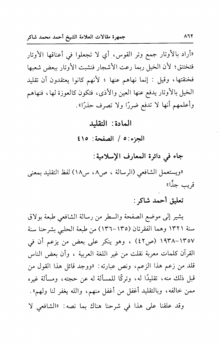 نام کتاب : جمهرة مقالات العلامة الشيخ أحمد محمد شاكر مع أهم تعقبات الشيخ على دائرة المعارف الإسلامية نویسنده : أحمد محمد شاكر أبو الأشبال جلد : 1 صفحه : 862