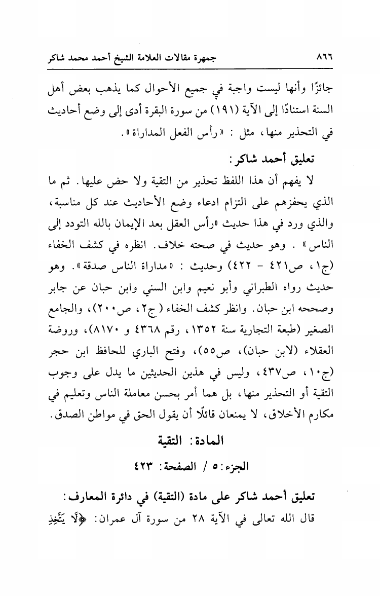 نام کتاب : جمهرة مقالات العلامة الشيخ أحمد محمد شاكر مع أهم تعقبات الشيخ على دائرة المعارف الإسلامية نویسنده : أحمد محمد شاكر أبو الأشبال جلد : 1 صفحه : 866