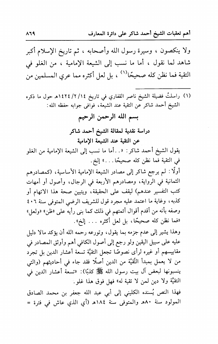 نام کتاب : جمهرة مقالات العلامة الشيخ أحمد محمد شاكر مع أهم تعقبات الشيخ على دائرة المعارف الإسلامية نویسنده : أحمد محمد شاكر أبو الأشبال جلد : 1 صفحه : 869