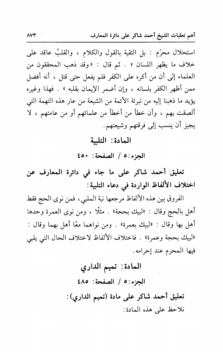 نام کتاب : جمهرة مقالات العلامة الشيخ أحمد محمد شاكر مع أهم تعقبات الشيخ على دائرة المعارف الإسلامية نویسنده : أحمد محمد شاكر أبو الأشبال جلد : 1 صفحه : 873