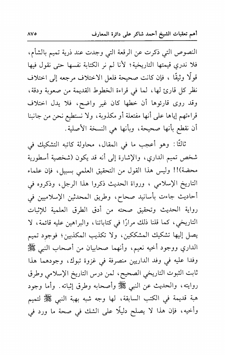 نام کتاب : جمهرة مقالات العلامة الشيخ أحمد محمد شاكر مع أهم تعقبات الشيخ على دائرة المعارف الإسلامية نویسنده : أحمد محمد شاكر أبو الأشبال جلد : 1 صفحه : 875