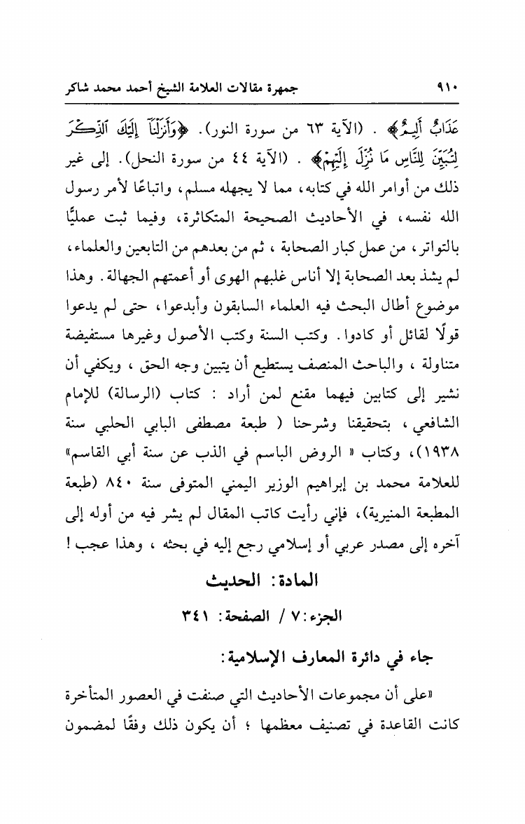 نام کتاب : جمهرة مقالات العلامة الشيخ أحمد محمد شاكر مع أهم تعقبات الشيخ على دائرة المعارف الإسلامية نویسنده : أحمد محمد شاكر أبو الأشبال جلد : 1 صفحه : 910
