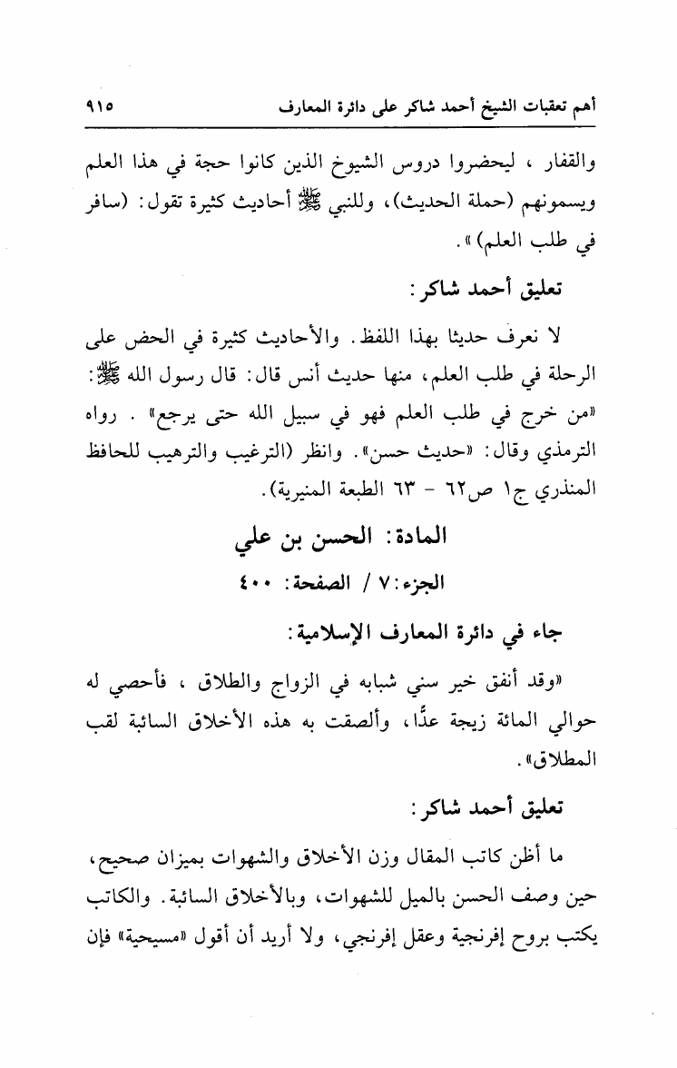 نام کتاب : جمهرة مقالات العلامة الشيخ أحمد محمد شاكر مع أهم تعقبات الشيخ على دائرة المعارف الإسلامية نویسنده : أحمد محمد شاكر أبو الأشبال جلد : 1 صفحه : 915