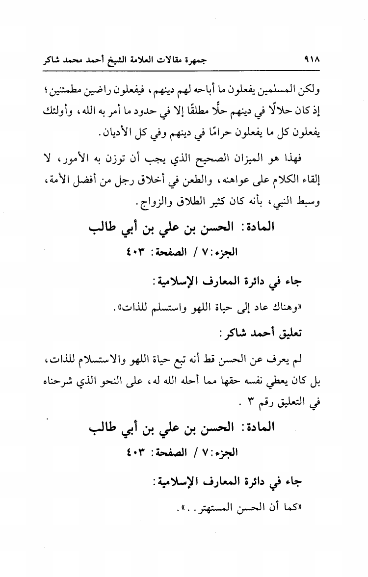 نام کتاب : جمهرة مقالات العلامة الشيخ أحمد محمد شاكر مع أهم تعقبات الشيخ على دائرة المعارف الإسلامية نویسنده : أحمد محمد شاكر أبو الأشبال جلد : 1 صفحه : 918