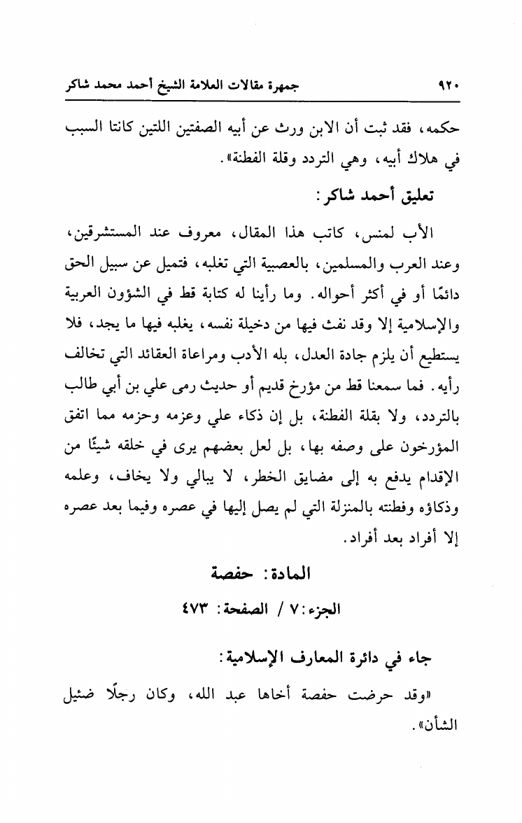 نام کتاب : جمهرة مقالات العلامة الشيخ أحمد محمد شاكر مع أهم تعقبات الشيخ على دائرة المعارف الإسلامية نویسنده : أحمد محمد شاكر أبو الأشبال جلد : 1 صفحه : 920