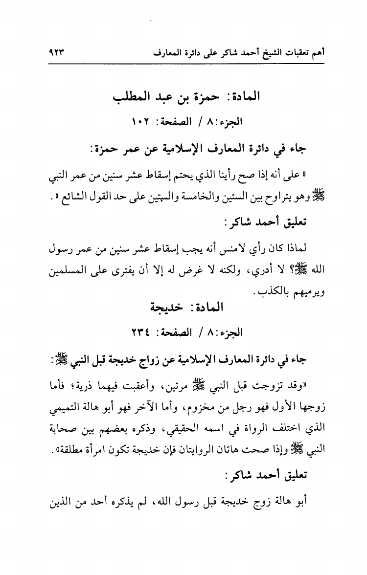نام کتاب : جمهرة مقالات العلامة الشيخ أحمد محمد شاكر مع أهم تعقبات الشيخ على دائرة المعارف الإسلامية نویسنده : أحمد محمد شاكر أبو الأشبال جلد : 1 صفحه : 923