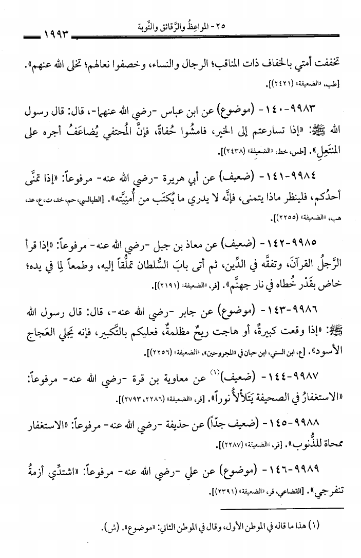 سلسلة الأحاديث الضعيفة والموضوعة مجردة عن التخريج