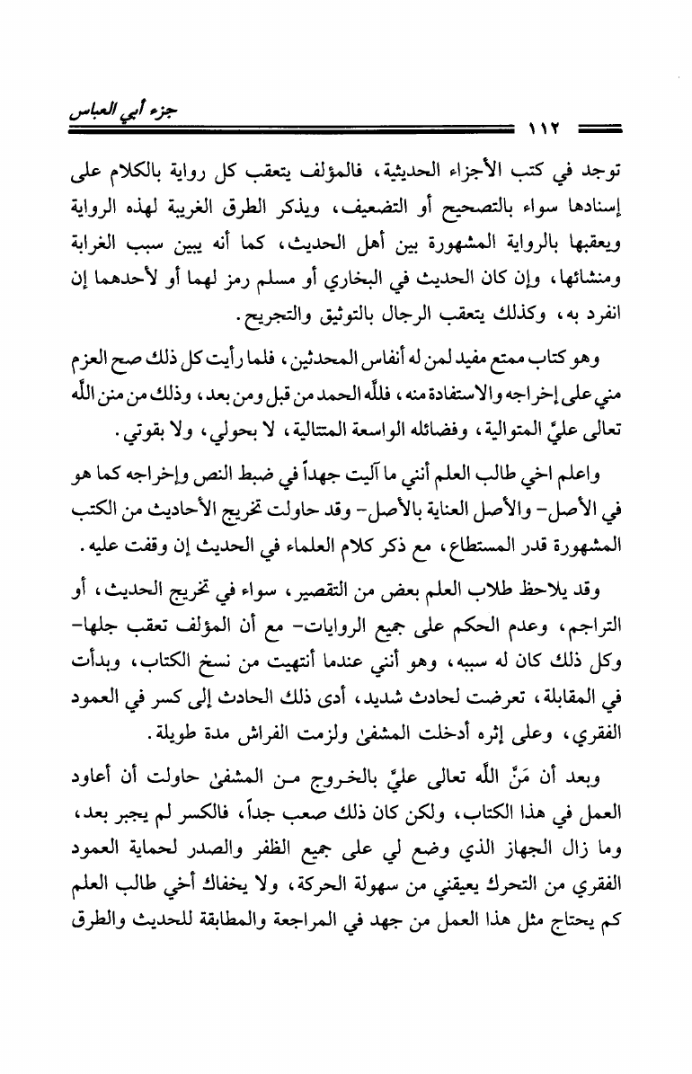 نام کتاب : مجموع فيه ثلاثة من الأجزاء الحديثية: جزء الحسن بن رشيق العسكري عن شيوخه من الأمالي - جزء أبي العباس رافع بن عصم بن العباس بن أحمد العصمي - جزء فيه مصافحة الإمام مسلم والإمام النسائي نویسنده : الحسن رشيق العسكري - رافع بن عصم - عبد المؤمن الدمياطي جلد : 1 صفحه : 112