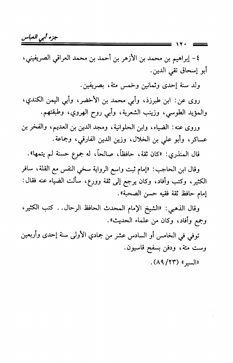 نام کتاب : مجموع فيه ثلاثة من الأجزاء الحديثية: جزء الحسن بن رشيق العسكري عن شيوخه من الأمالي - جزء أبي العباس رافع بن عصم بن العباس بن أحمد العصمي - جزء فيه مصافحة الإمام مسلم والإمام النسائي نویسنده : الحسن رشيق العسكري - رافع بن عصم - عبد المؤمن الدمياطي جلد : 1 صفحه : 120