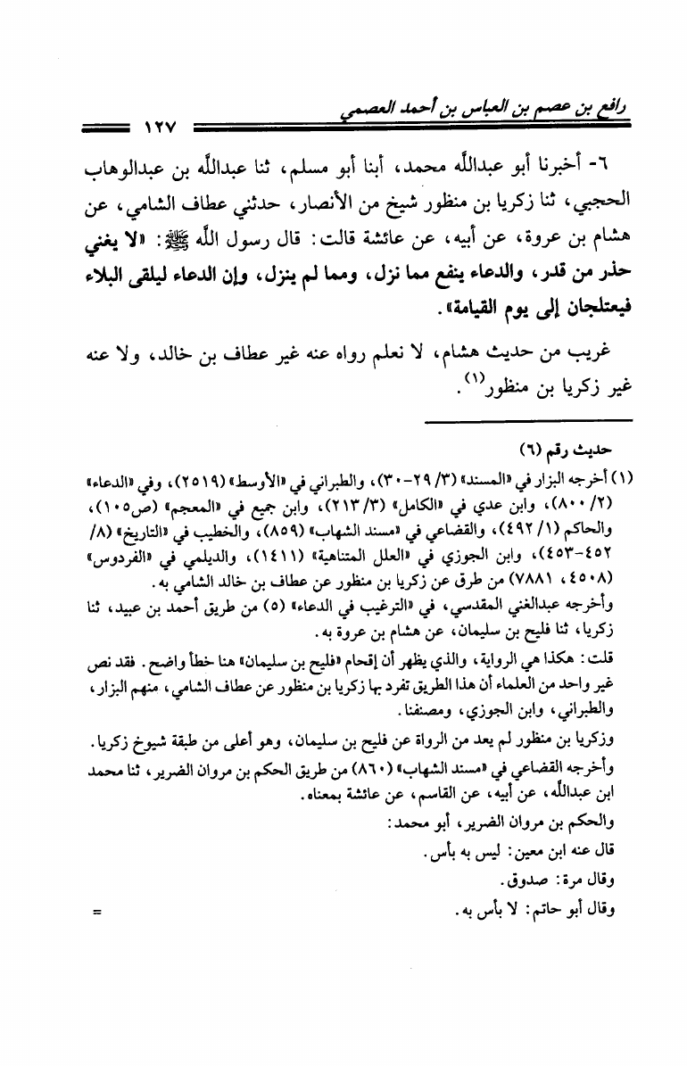 نام کتاب : مجموع فيه ثلاثة من الأجزاء الحديثية: جزء الحسن بن رشيق العسكري عن شيوخه من الأمالي - جزء أبي العباس رافع بن عصم بن العباس بن أحمد العصمي - جزء فيه مصافحة الإمام مسلم والإمام النسائي نویسنده : الحسن رشيق العسكري - رافع بن عصم - عبد المؤمن الدمياطي جلد : 1 صفحه : 127