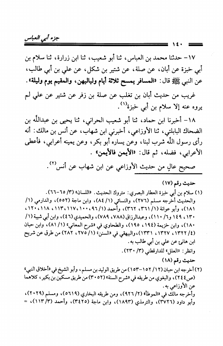 نام کتاب : مجموع فيه ثلاثة من الأجزاء الحديثية: جزء الحسن بن رشيق العسكري عن شيوخه من الأمالي - جزء أبي العباس رافع بن عصم بن العباس بن أحمد العصمي - جزء فيه مصافحة الإمام مسلم والإمام النسائي نویسنده : الحسن رشيق العسكري - رافع بن عصم - عبد المؤمن الدمياطي جلد : 1 صفحه : 140