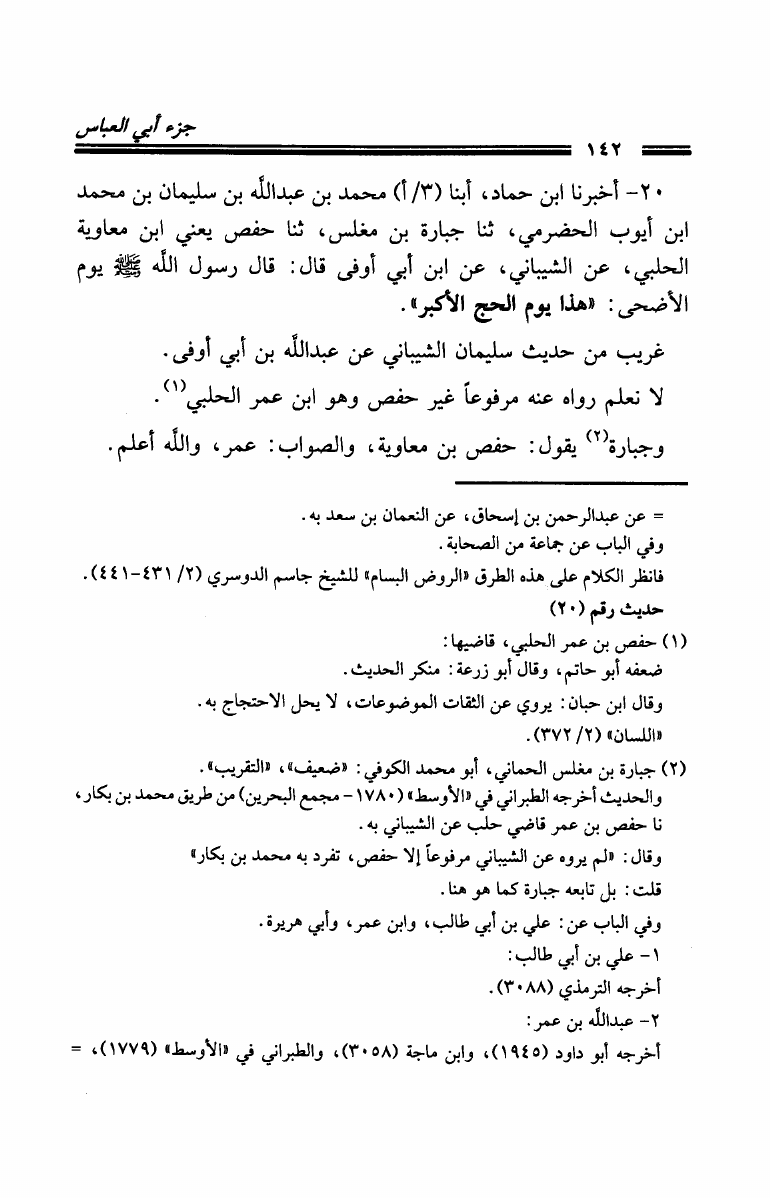 نام کتاب : مجموع فيه ثلاثة من الأجزاء الحديثية: جزء الحسن بن رشيق العسكري عن شيوخه من الأمالي - جزء أبي العباس رافع بن عصم بن العباس بن أحمد العصمي - جزء فيه مصافحة الإمام مسلم والإمام النسائي نویسنده : الحسن رشيق العسكري - رافع بن عصم - عبد المؤمن الدمياطي جلد : 1 صفحه : 142