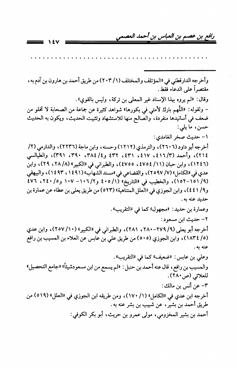 نام کتاب : مجموع فيه ثلاثة من الأجزاء الحديثية: جزء الحسن بن رشيق العسكري عن شيوخه من الأمالي - جزء أبي العباس رافع بن عصم بن العباس بن أحمد العصمي - جزء فيه مصافحة الإمام مسلم والإمام النسائي نویسنده : الحسن رشيق العسكري - رافع بن عصم - عبد المؤمن الدمياطي جلد : 1 صفحه : 147