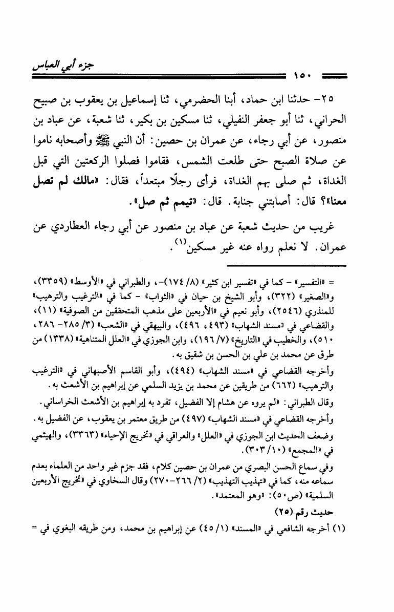 نام کتاب : مجموع فيه ثلاثة من الأجزاء الحديثية: جزء الحسن بن رشيق العسكري عن شيوخه من الأمالي - جزء أبي العباس رافع بن عصم بن العباس بن أحمد العصمي - جزء فيه مصافحة الإمام مسلم والإمام النسائي نویسنده : الحسن رشيق العسكري - رافع بن عصم - عبد المؤمن الدمياطي جلد : 1 صفحه : 150