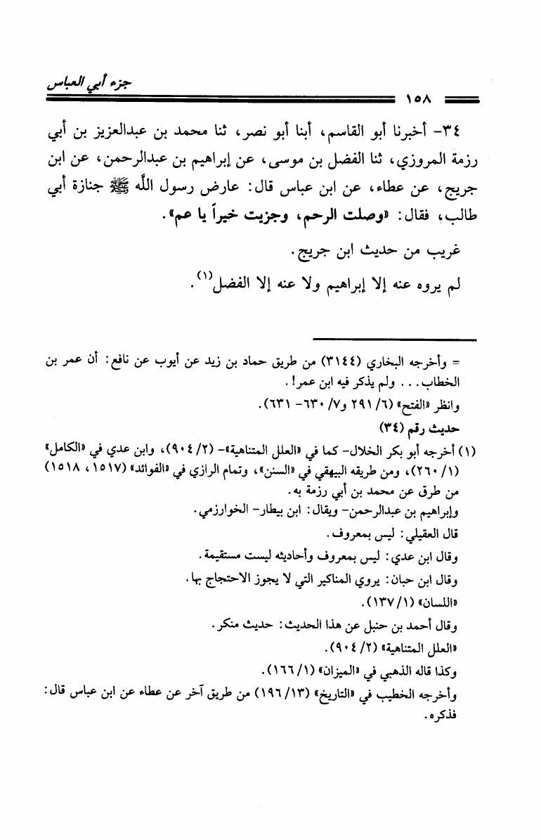 نام کتاب : مجموع فيه ثلاثة من الأجزاء الحديثية: جزء الحسن بن رشيق العسكري عن شيوخه من الأمالي - جزء أبي العباس رافع بن عصم بن العباس بن أحمد العصمي - جزء فيه مصافحة الإمام مسلم والإمام النسائي نویسنده : الحسن رشيق العسكري - رافع بن عصم - عبد المؤمن الدمياطي جلد : 1 صفحه : 158
