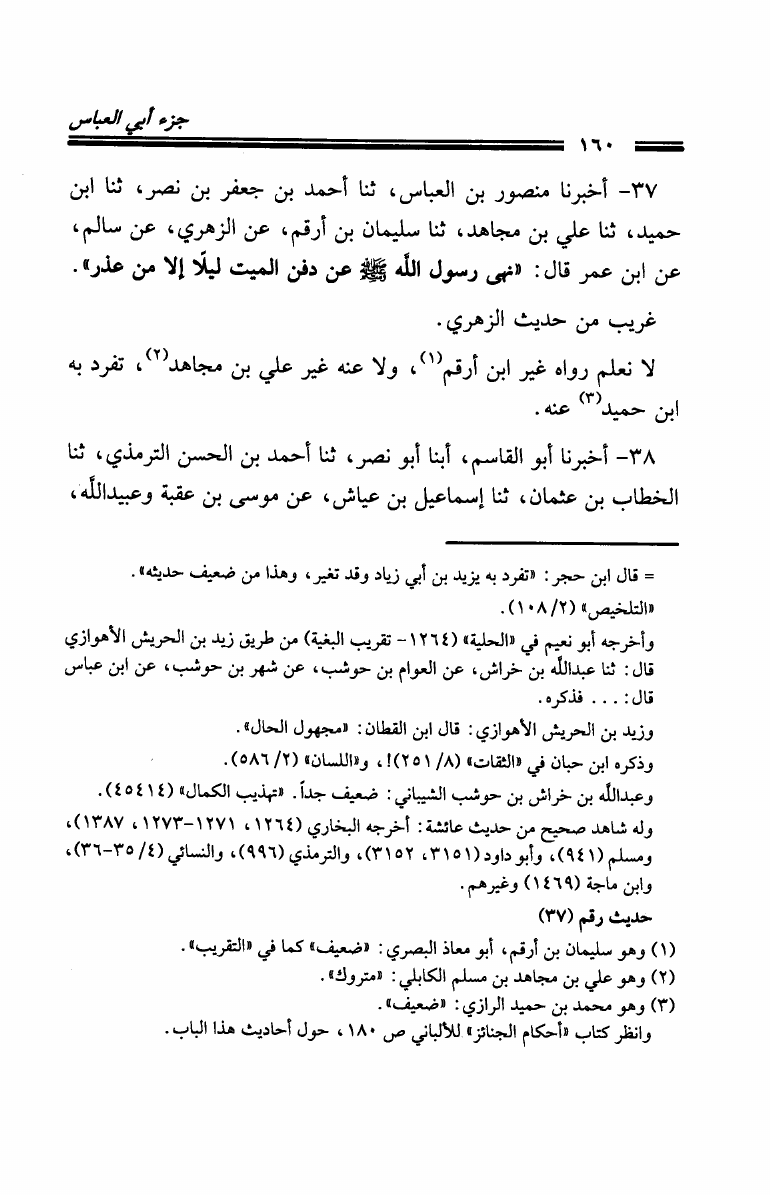 نام کتاب : مجموع فيه ثلاثة من الأجزاء الحديثية: جزء الحسن بن رشيق العسكري عن شيوخه من الأمالي - جزء أبي العباس رافع بن عصم بن العباس بن أحمد العصمي - جزء فيه مصافحة الإمام مسلم والإمام النسائي نویسنده : الحسن رشيق العسكري - رافع بن عصم - عبد المؤمن الدمياطي جلد : 1 صفحه : 160