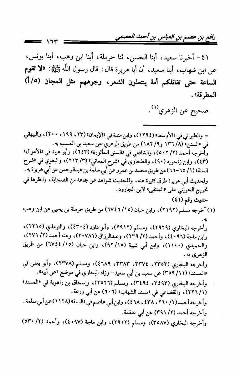 نام کتاب : مجموع فيه ثلاثة من الأجزاء الحديثية: جزء الحسن بن رشيق العسكري عن شيوخه من الأمالي - جزء أبي العباس رافع بن عصم بن العباس بن أحمد العصمي - جزء فيه مصافحة الإمام مسلم والإمام النسائي نویسنده : الحسن رشيق العسكري - رافع بن عصم - عبد المؤمن الدمياطي جلد : 1 صفحه : 163