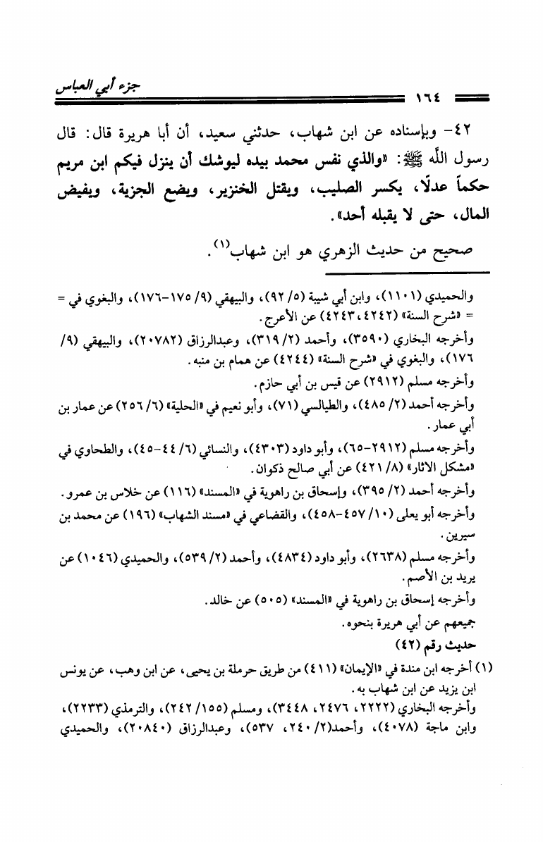 نام کتاب : مجموع فيه ثلاثة من الأجزاء الحديثية: جزء الحسن بن رشيق العسكري عن شيوخه من الأمالي - جزء أبي العباس رافع بن عصم بن العباس بن أحمد العصمي - جزء فيه مصافحة الإمام مسلم والإمام النسائي نویسنده : الحسن رشيق العسكري - رافع بن عصم - عبد المؤمن الدمياطي جلد : 1 صفحه : 164