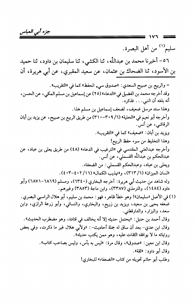 نام کتاب : مجموع فيه ثلاثة من الأجزاء الحديثية: جزء الحسن بن رشيق العسكري عن شيوخه من الأمالي - جزء أبي العباس رافع بن عصم بن العباس بن أحمد العصمي - جزء فيه مصافحة الإمام مسلم والإمام النسائي نویسنده : الحسن رشيق العسكري - رافع بن عصم - عبد المؤمن الدمياطي جلد : 1 صفحه : 176