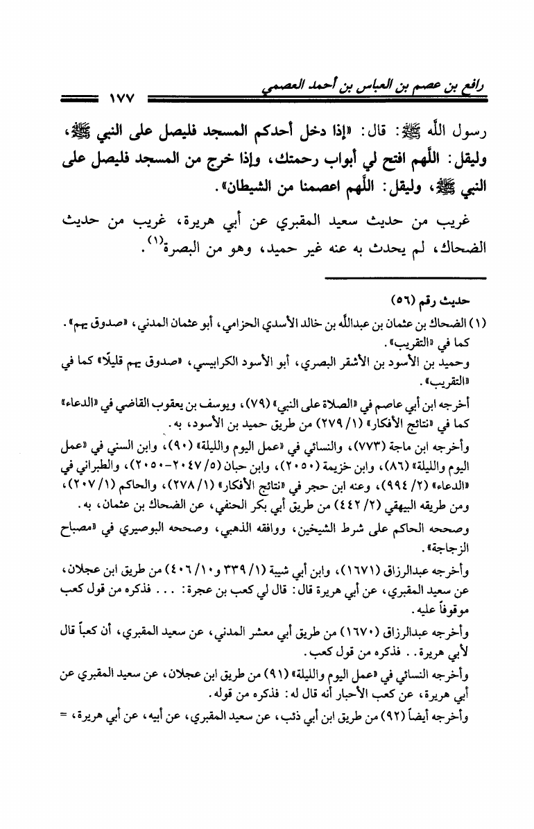 نام کتاب : مجموع فيه ثلاثة من الأجزاء الحديثية: جزء الحسن بن رشيق العسكري عن شيوخه من الأمالي - جزء أبي العباس رافع بن عصم بن العباس بن أحمد العصمي - جزء فيه مصافحة الإمام مسلم والإمام النسائي نویسنده : الحسن رشيق العسكري - رافع بن عصم - عبد المؤمن الدمياطي جلد : 1 صفحه : 177