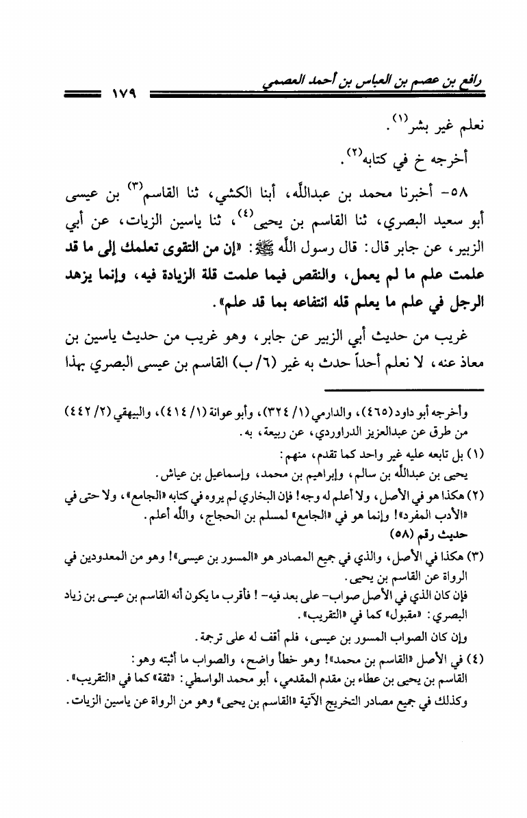 نام کتاب : مجموع فيه ثلاثة من الأجزاء الحديثية: جزء الحسن بن رشيق العسكري عن شيوخه من الأمالي - جزء أبي العباس رافع بن عصم بن العباس بن أحمد العصمي - جزء فيه مصافحة الإمام مسلم والإمام النسائي نویسنده : الحسن رشيق العسكري - رافع بن عصم - عبد المؤمن الدمياطي جلد : 1 صفحه : 179