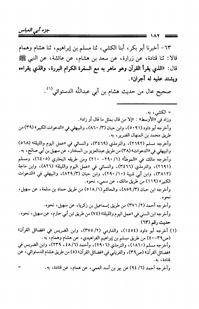نام کتاب : مجموع فيه ثلاثة من الأجزاء الحديثية: جزء الحسن بن رشيق العسكري عن شيوخه من الأمالي - جزء أبي العباس رافع بن عصم بن العباس بن أحمد العصمي - جزء فيه مصافحة الإمام مسلم والإمام النسائي نویسنده : الحسن رشيق العسكري - رافع بن عصم - عبد المؤمن الدمياطي جلد : 1 صفحه : 182