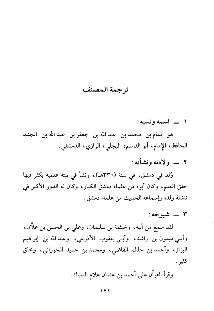 نام کتاب : مجموع فيه جواب بعض الخدم لأهل النعم عن تصحيف حديث احتجم، ويليه العشرة من مرويات صالح ابن الإمام أحمد وزيادتها، ويليه جزء فيه إسلام زيد بن حارثة وغيره من أحاديث الشيوخ نویسنده : يوسف بن عبد الهادي الصالحي ابن المبرد - تمام بن محمد الرازي جلد : 1 صفحه : 121