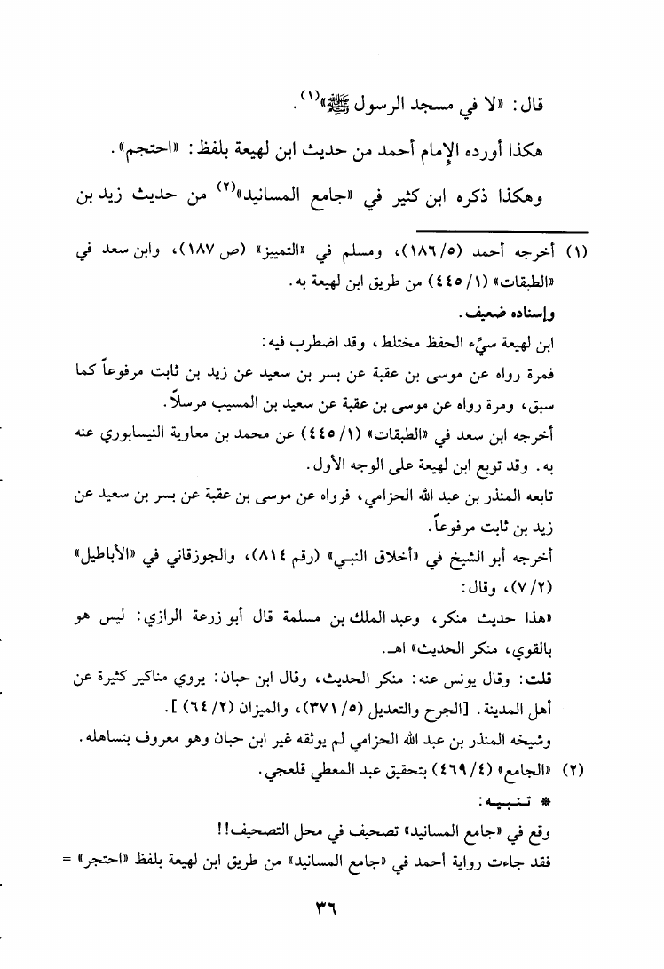 نام کتاب : مجموع فيه جواب بعض الخدم لأهل النعم عن تصحيف حديث احتجم، ويليه العشرة من مرويات صالح ابن الإمام أحمد وزيادتها، ويليه جزء فيه إسلام زيد بن حارثة وغيره من أحاديث الشيوخ نویسنده : يوسف بن عبد الهادي الصالحي ابن المبرد - تمام بن محمد الرازي جلد : 1 صفحه : 36