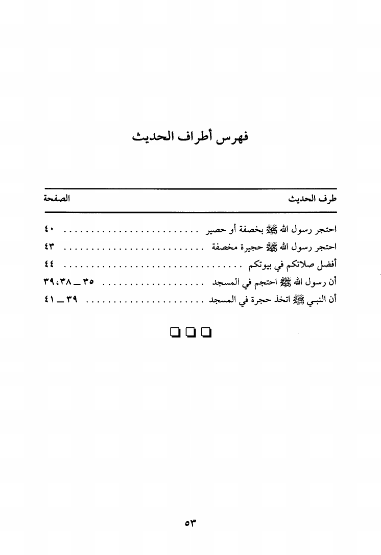 نام کتاب : مجموع فيه جواب بعض الخدم لأهل النعم عن تصحيف حديث احتجم، ويليه العشرة من مرويات صالح ابن الإمام أحمد وزيادتها، ويليه جزء فيه إسلام زيد بن حارثة وغيره من أحاديث الشيوخ نویسنده : يوسف بن عبد الهادي الصالحي ابن المبرد - تمام بن محمد الرازي جلد : 1 صفحه : 53