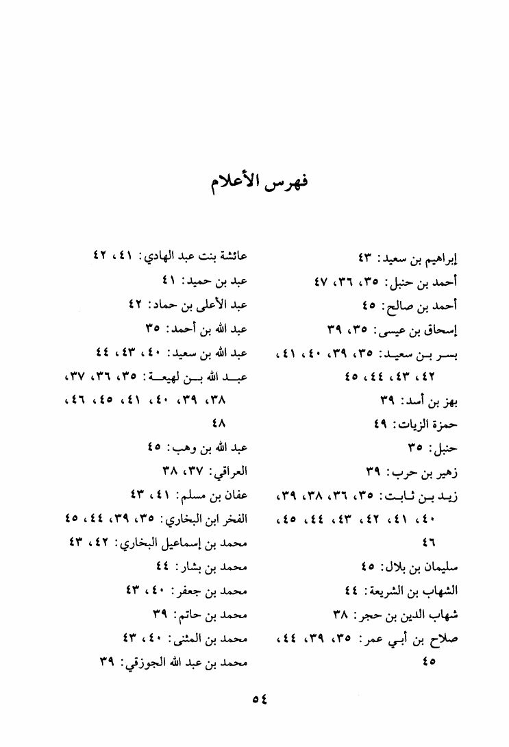 نام کتاب : مجموع فيه جواب بعض الخدم لأهل النعم عن تصحيف حديث احتجم، ويليه العشرة من مرويات صالح ابن الإمام أحمد وزيادتها، ويليه جزء فيه إسلام زيد بن حارثة وغيره من أحاديث الشيوخ نویسنده : يوسف بن عبد الهادي الصالحي ابن المبرد - تمام بن محمد الرازي جلد : 1 صفحه : 54