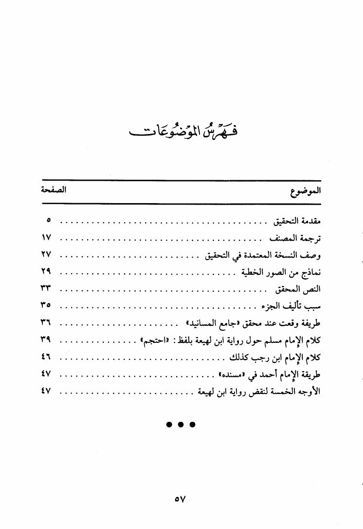 نام کتاب : مجموع فيه جواب بعض الخدم لأهل النعم عن تصحيف حديث احتجم، ويليه العشرة من مرويات صالح ابن الإمام أحمد وزيادتها، ويليه جزء فيه إسلام زيد بن حارثة وغيره من أحاديث الشيوخ نویسنده : يوسف بن عبد الهادي الصالحي ابن المبرد - تمام بن محمد الرازي جلد : 1 صفحه : 57