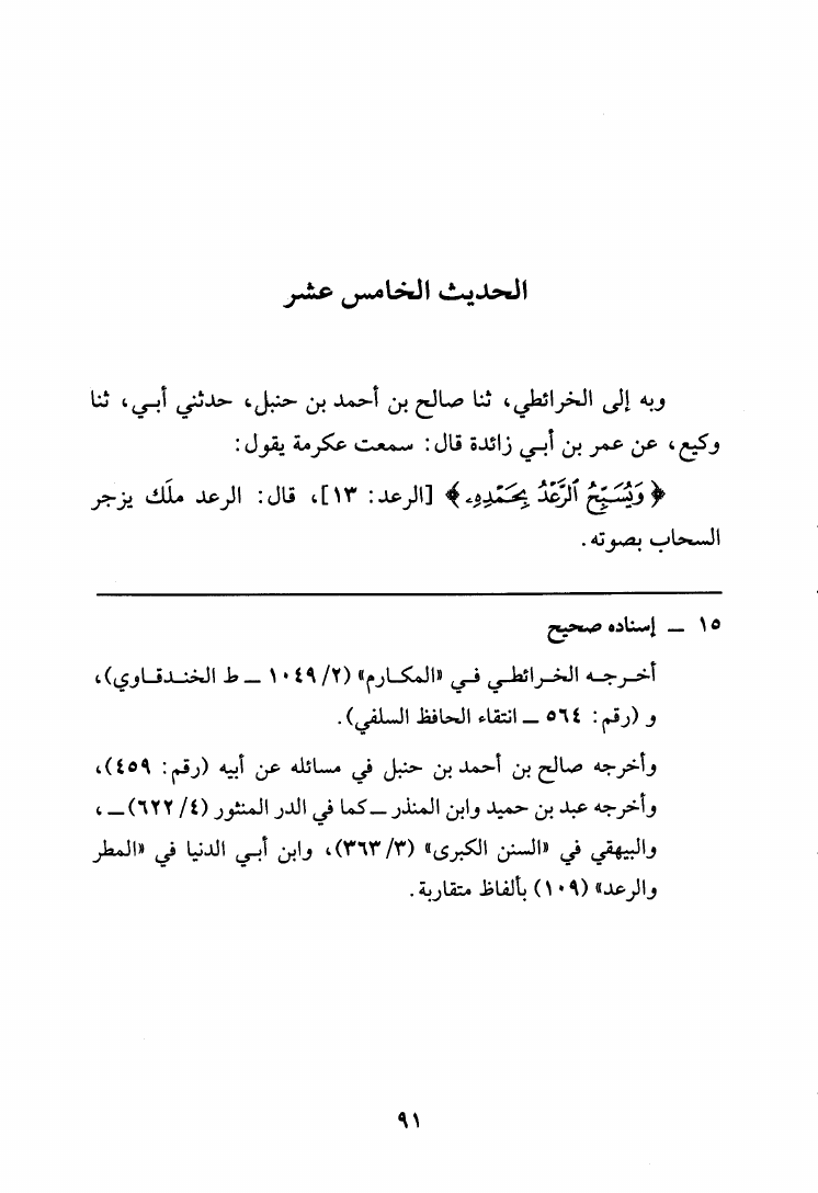 نام کتاب : مجموع فيه جواب بعض الخدم لأهل النعم عن تصحيف حديث احتجم، ويليه العشرة من مرويات صالح ابن الإمام أحمد وزيادتها، ويليه جزء فيه إسلام زيد بن حارثة وغيره من أحاديث الشيوخ نویسنده : يوسف بن عبد الهادي الصالحي ابن المبرد - تمام بن محمد الرازي جلد : 1 صفحه : 91