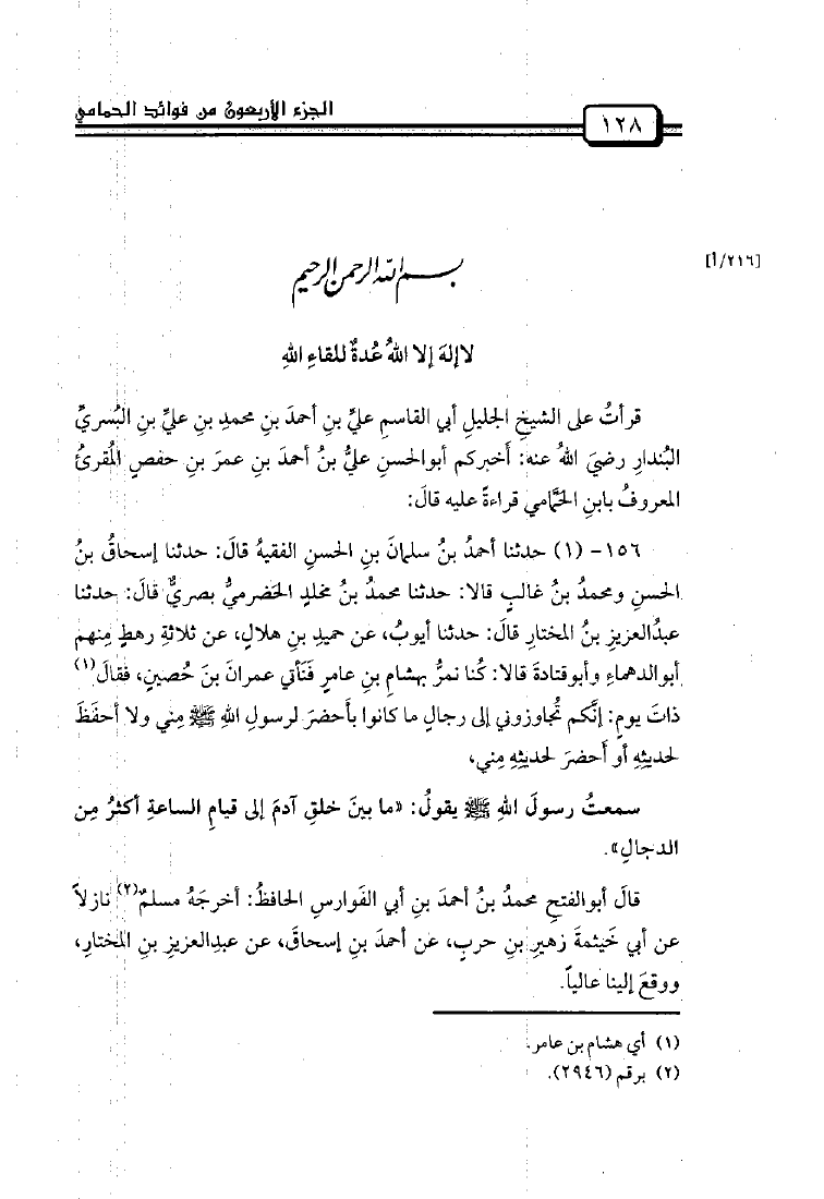 مجموع فيه مصنفات أبي الحسن ابن الحمامي وأجزاء حديثية أخرى