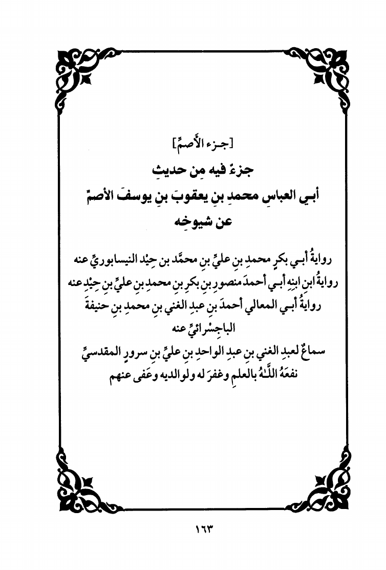 محمد بن يعقوب بن يوسف النيسابوري أبو العباس الأصم - إسماعيل بن محمد بن إسماعيل البغدادي الصفار أبو علي