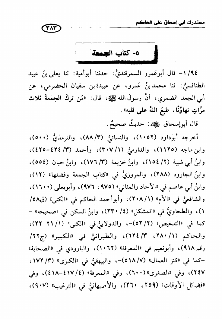 مستدرك أبي إسحاق الحويني على أبي عبد الله الحاكم النيسابوري
