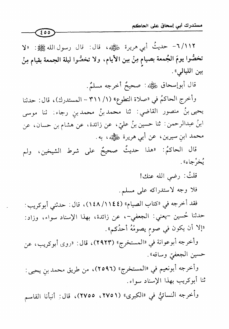 مستدرك أبي إسحاق الحويني على أبي عبد الله الحاكم النيسابوري