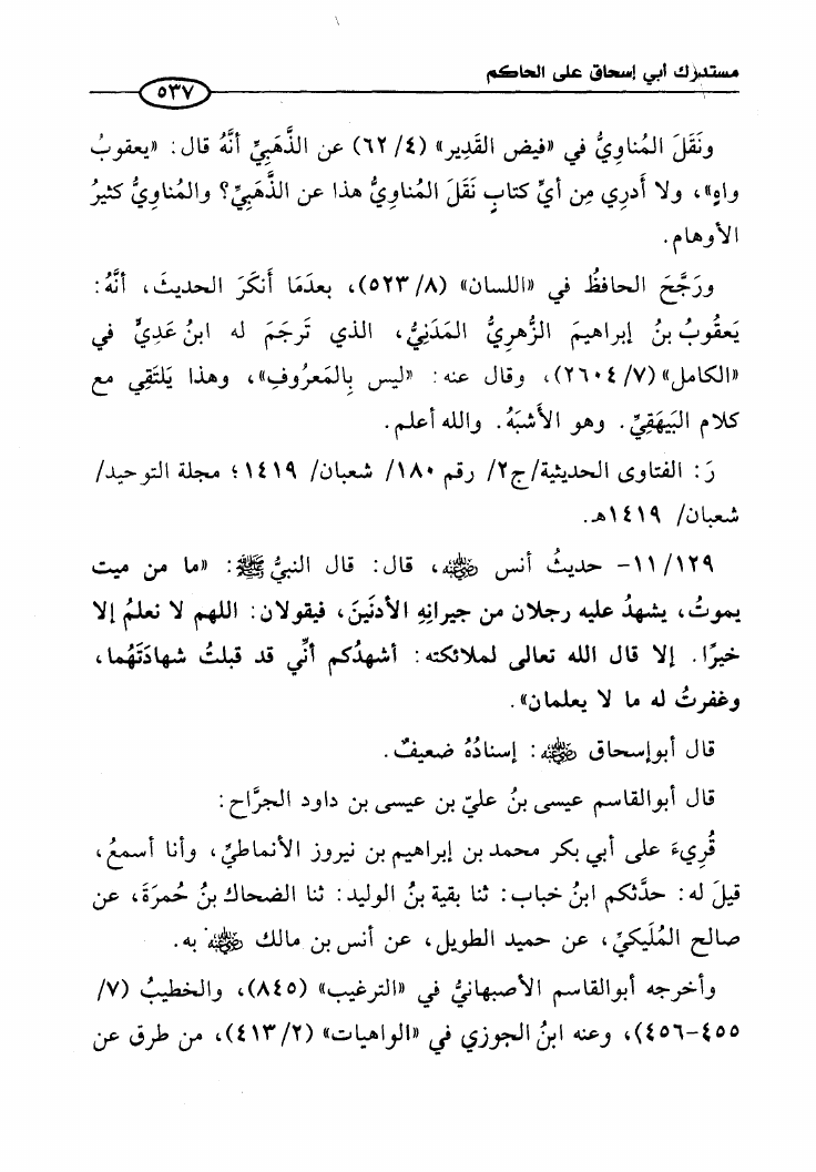 مستدرك أبي إسحاق الحويني على أبي عبد الله الحاكم النيسابوري