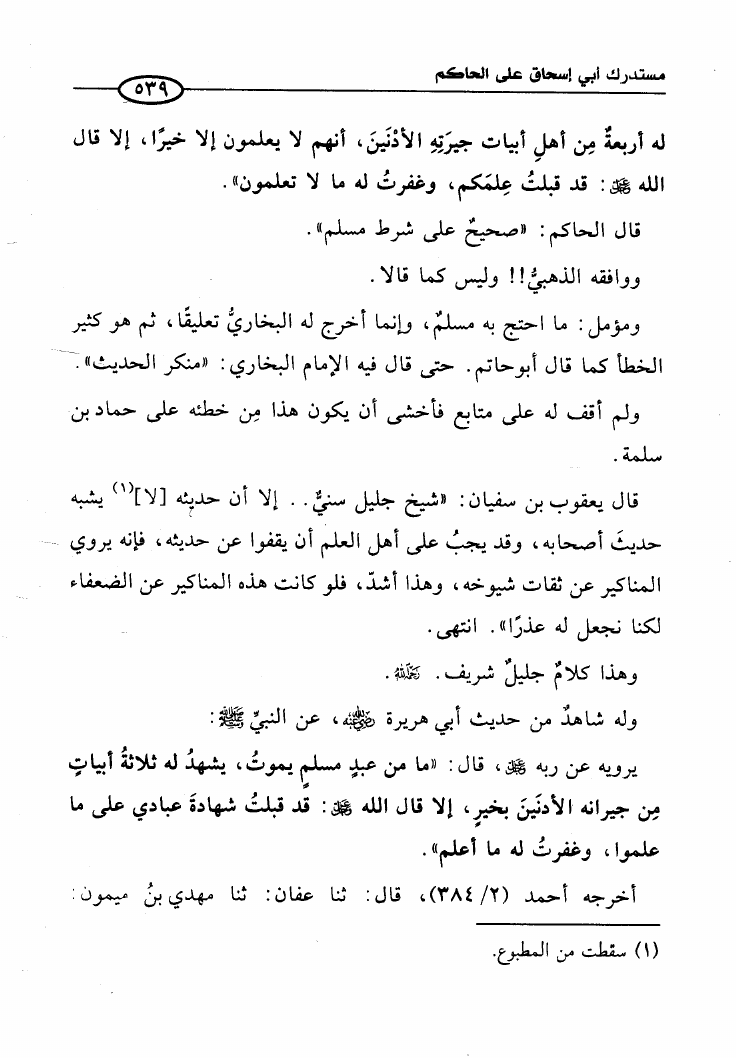 مستدرك أبي إسحاق الحويني على أبي عبد الله الحاكم النيسابوري