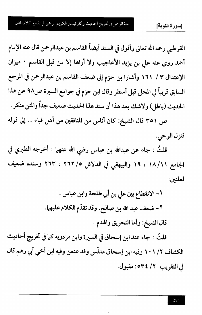 منة الرحمن في تخريج أحاديث وآثار تيسير الكريم الرحمن في تفسير كلام المنان