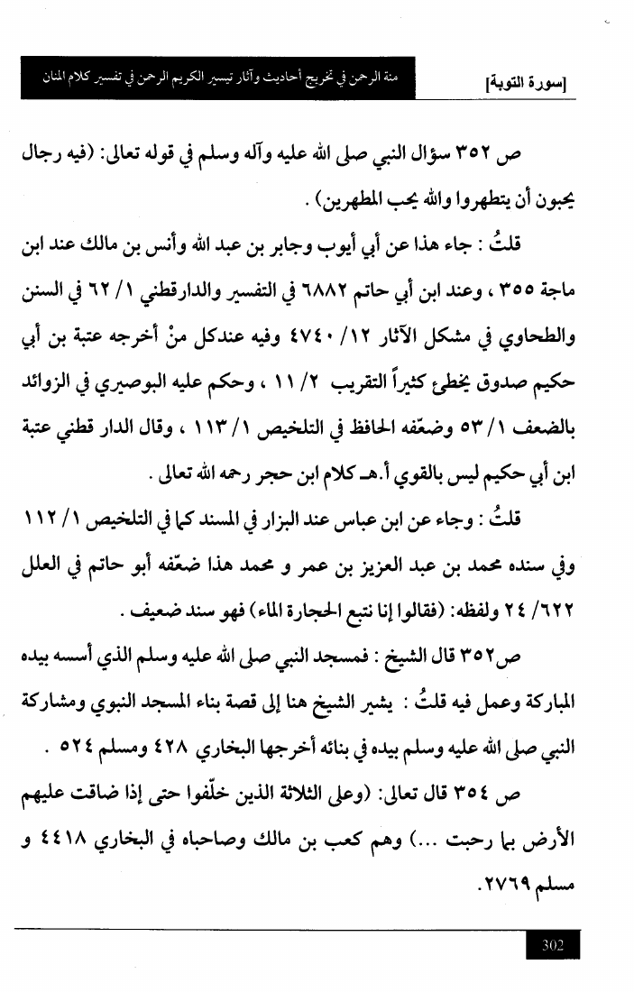 منة الرحمن في تخريج أحاديث وآثار تيسير الكريم الرحمن في تفسير كلام المنان