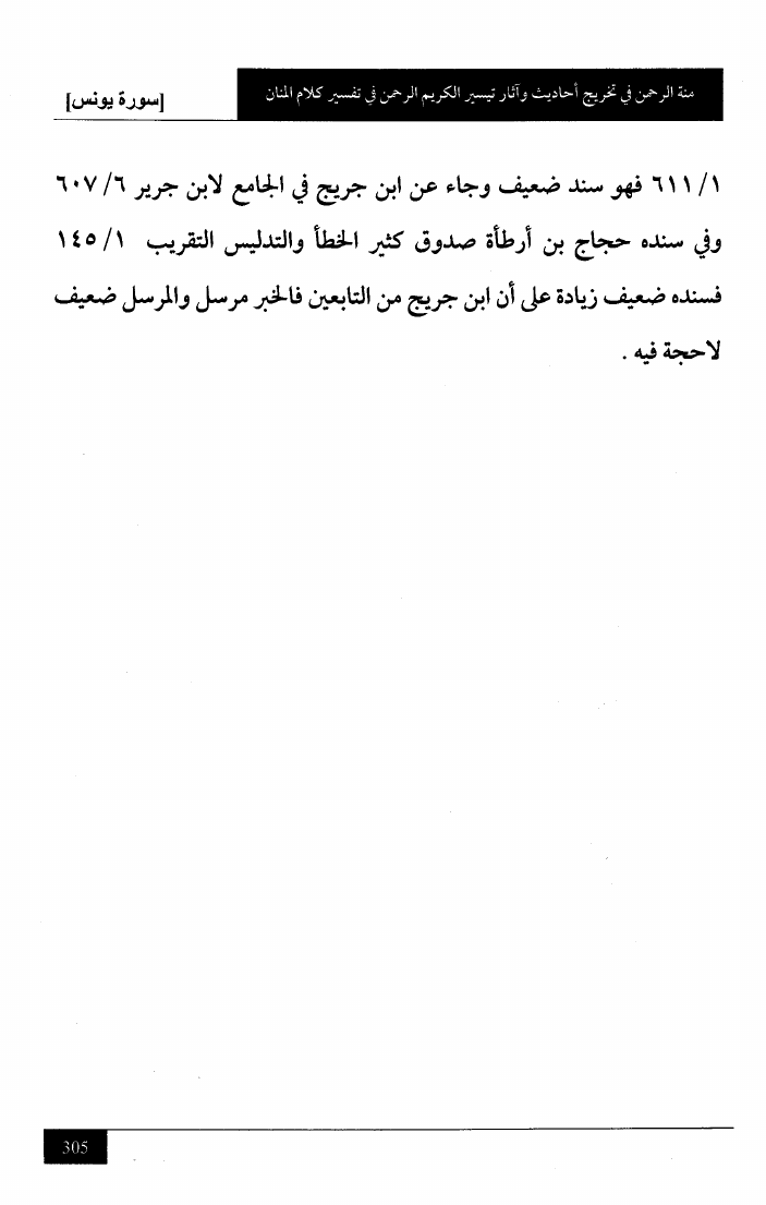 منة الرحمن في تخريج أحاديث وآثار تيسير الكريم الرحمن في تفسير كلام المنان