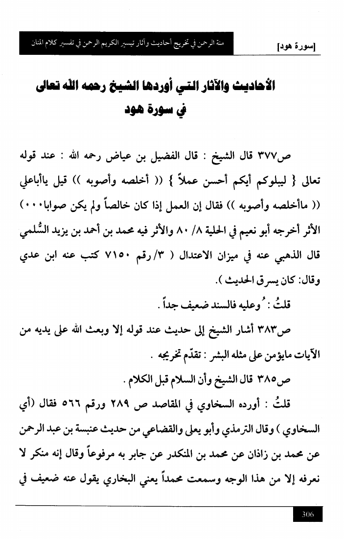 منة الرحمن في تخريج أحاديث وآثار تيسير الكريم الرحمن في تفسير كلام المنان