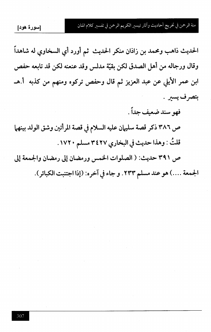 منة الرحمن في تخريج أحاديث وآثار تيسير الكريم الرحمن في تفسير كلام المنان