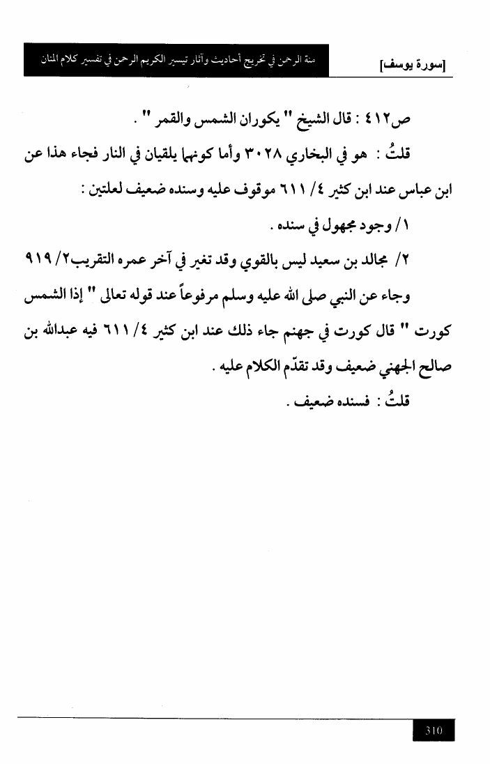 منة الرحمن في تخريج أحاديث وآثار تيسير الكريم الرحمن في تفسير كلام المنان