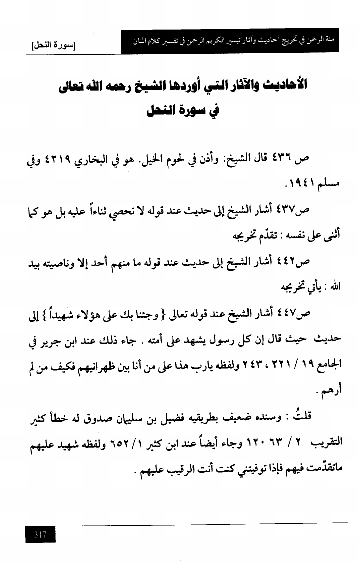 منة الرحمن في تخريج أحاديث وآثار تيسير الكريم الرحمن في تفسير كلام المنان