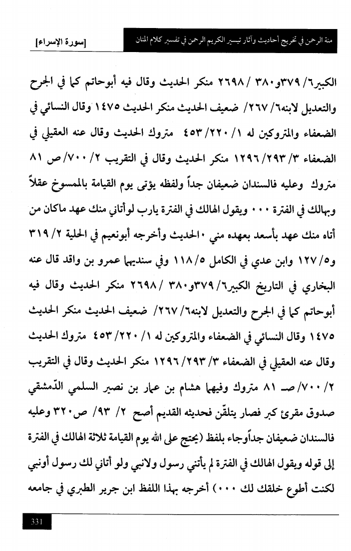 منة الرحمن في تخريج أحاديث وآثار تيسير الكريم الرحمن في تفسير كلام المنان