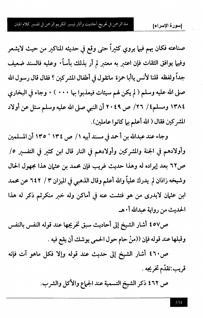 منة الرحمن في تخريج أحاديث وآثار تيسير الكريم الرحمن في تفسير كلام المنان
